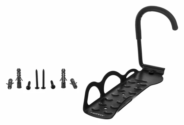 Support mural Neatt simple pour un rangement efficace et sécuritaire. Sa plateforme large et le crochet surdimensionné permettent la suspension d’un VTT avec des roues larges. Un crochet de rangement permet de gagner de la place au sol et vous évite de déposer votre vélo contre un objet qui pourrait l’abîmer, c’est une solution simple et rapide à installer. De plus, ce support Neatt est sobre et élégant, il passera inaperçu dans votre garage.