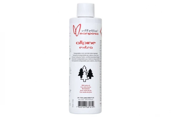 Grâce à sa teneur en huile de pin, Allpine Extra est un dégraissant puissant et biodégradable : après rinçage à l’eau, il laissera votre chaîne parfaitement propre. Idéal pour préparer la chaîne aux lubrifiants à base de cire, qui peuvent adhérer au métal propre, sans la trace huileuse laissée par certains solvants courants. Idéal pour nettoyer les disques de frein.