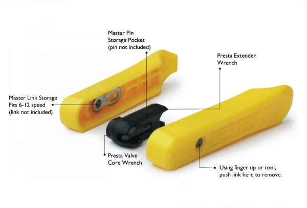 Les démonte pneus Micro de Pedro’s dispose d’un format Micro et d’un poids ultra light de 20g, la conception permet une utilisation efficace et peut renfermer une attache rapide et une clé pour valve presta et compatible avec les mufti-outils Perdos RX Micro.