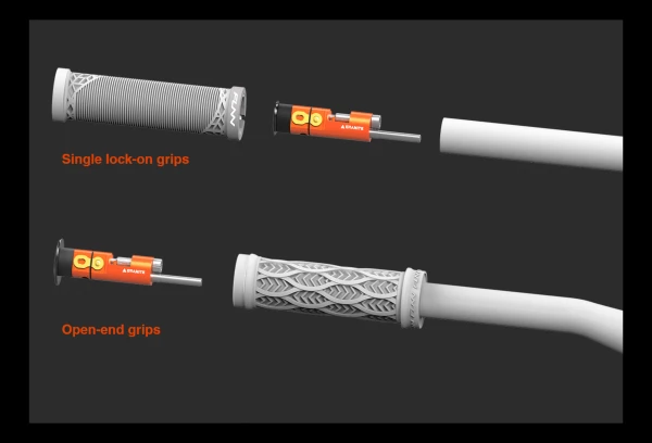 - Fixation : Poignée à bout ouvert ou lock-on avec ouverture de 18 à 21 mm et section droite de 10 cm à l’extrémité du guidon.