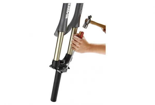 Opter pour un outil adapté au démontage de votre cône de direction. Cet outil vous permettra de retirer votre cône de direction en toute sécurité et sans endommager votre fourche. Il se place comme une mâchoire autour de la coupelle et réduit très fortement les risques d’abîmer votre fourche notamment le té. Il sera adapté pour tout type de pivot de fourche, rigide ou suspendu.